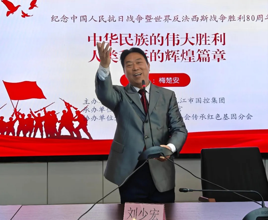 梅教授以《紀念中國人民抗日戰(zhàn)爭暨世界反法西斯戰(zhàn)爭勝利80周年 中華民族的偉大勝利 世界和平的輝煌篇章》為主題,為全體黨員帶來了一場震撼人心的精彩講座。他憑借豐富詳實的史料、生動鮮活的講述,帶領(lǐng)大家穿越時空,重溫了那段波瀾壯闊的抗戰(zhàn)歲月。通過對關(guān)鍵歷史事件的深度剖析,深刻展現(xiàn)了中華民族在抗戰(zhàn)中展現(xiàn)出的頑強不屈精神,以及抗戰(zhàn)勝利對世界和平進程的深遠影響,讓黨員們深受觸動,進一步堅定了理想信念,從歷史中汲取到奮勇前行的強大動力。另外,還邀請了劉少宏老師進行激情澎湃的紅歌獻唱。